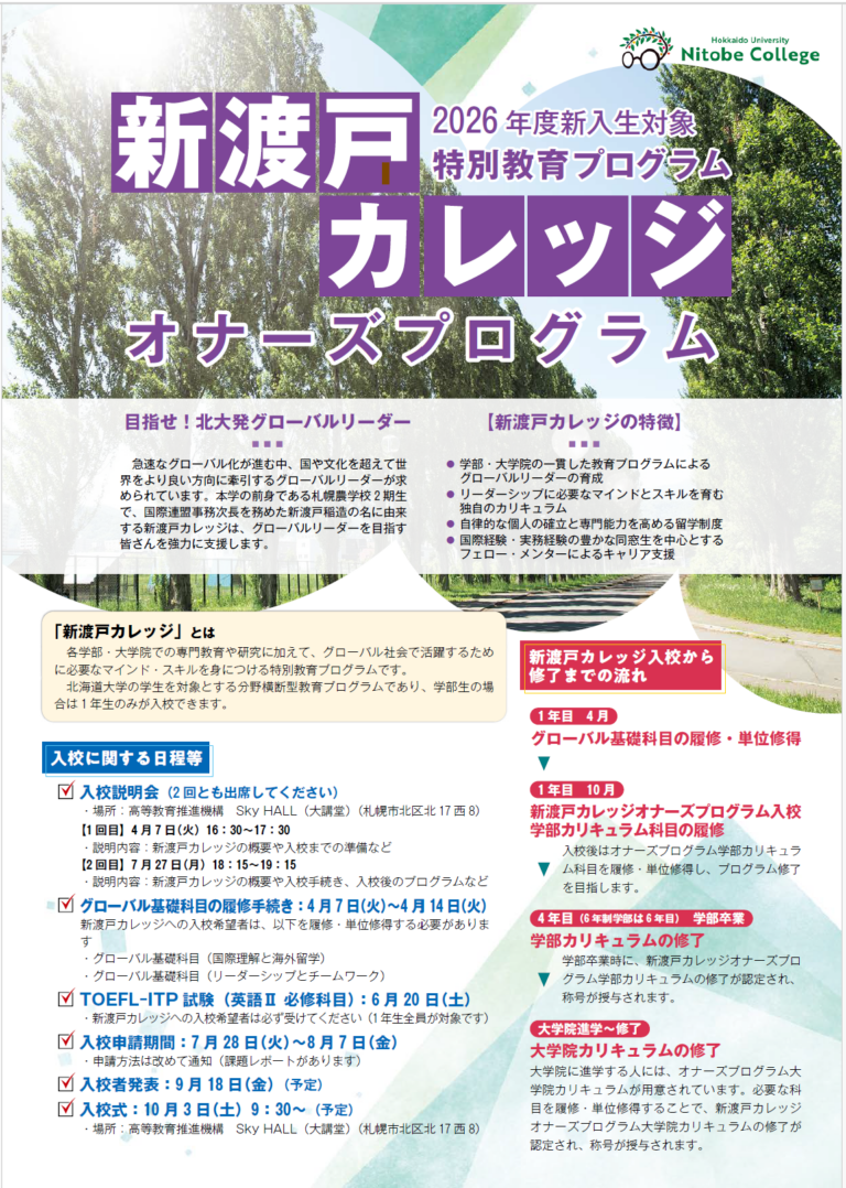 - 出典: 『北海道大学 高等教育推進機構ニュースレター No.93』