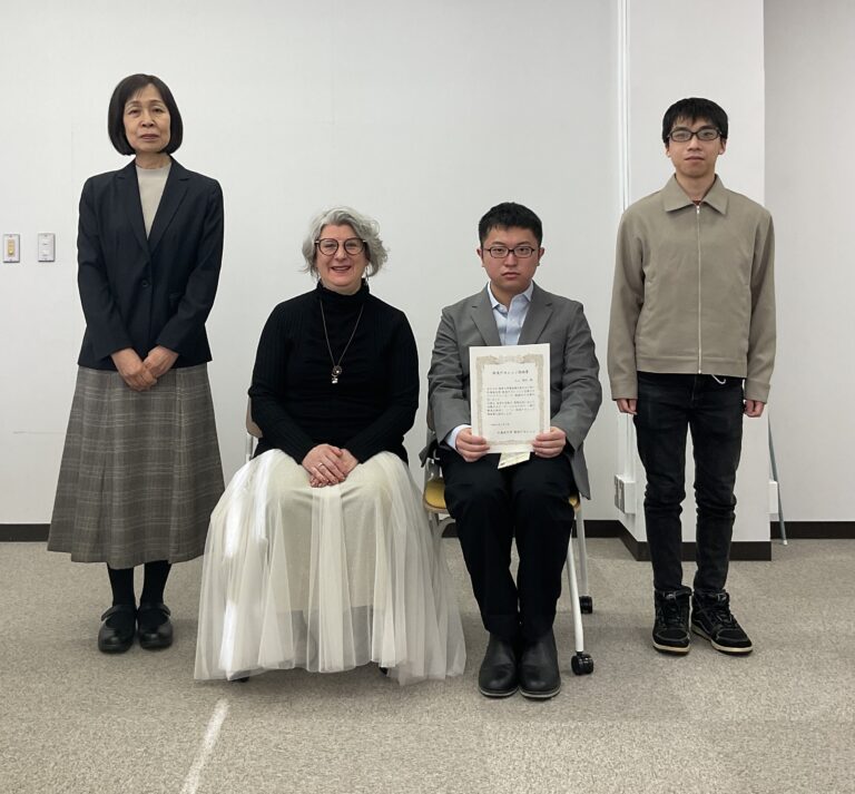2026年2月5日(木)に行われた授賞式では、ラフェイ・ミシェル副校長から式に出席した三上さんへ、表彰状と副賞として校友会エルムからの記念品が渡されました。